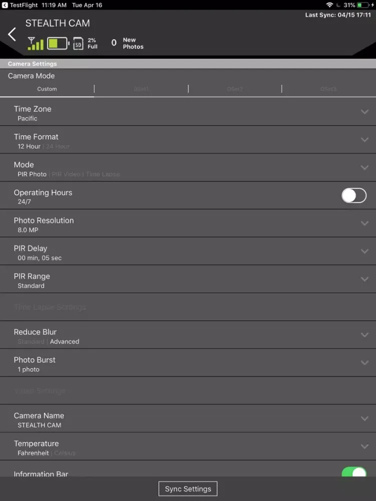 Ảnh chụp màn hình của Stealth Cam REMOTE iPad