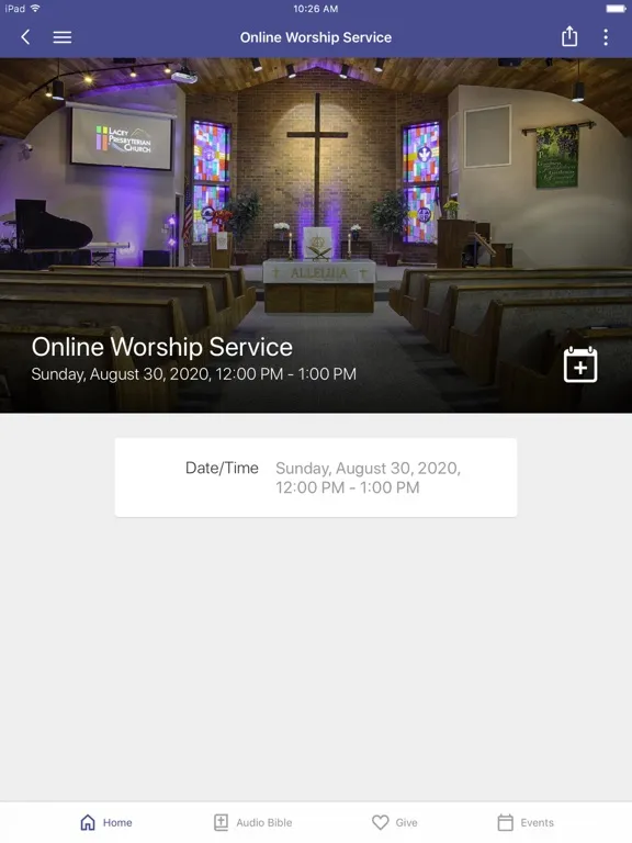 Ảnh chụp màn hình của Lacey Presbyterian Church iPad