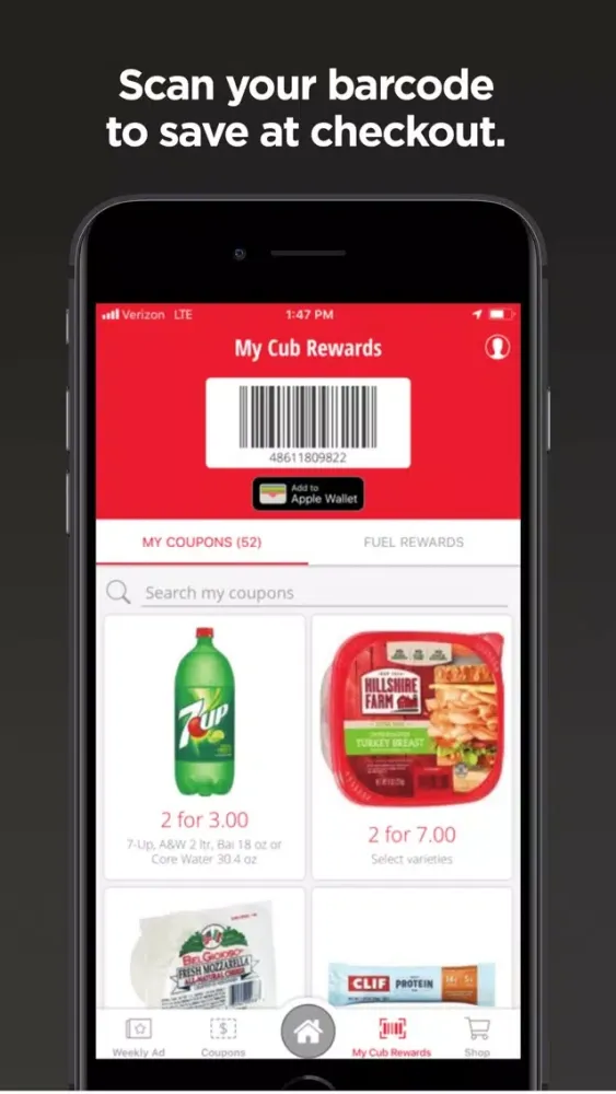 With the Cub app, you can add digital deals directly to your digital account and save instantly at checkout.
