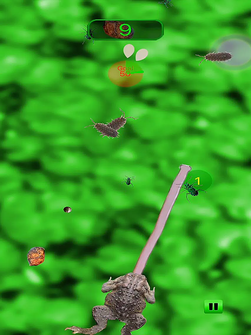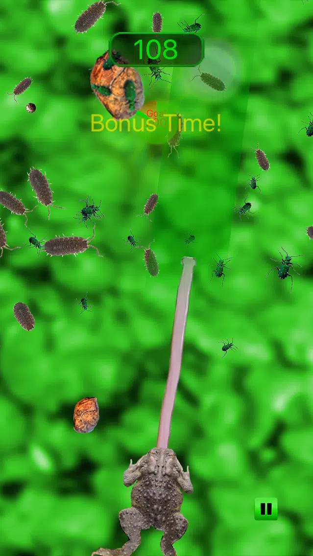 Frogs love to catch yummy bugs with their long sticky tongue. Tap the screen and watch your frogs tongue fly out striking any bugs in it's path. Bugs get trapped by the sticky tongue and become a great meal for your frog. Earn points for each bug your frog eats.
