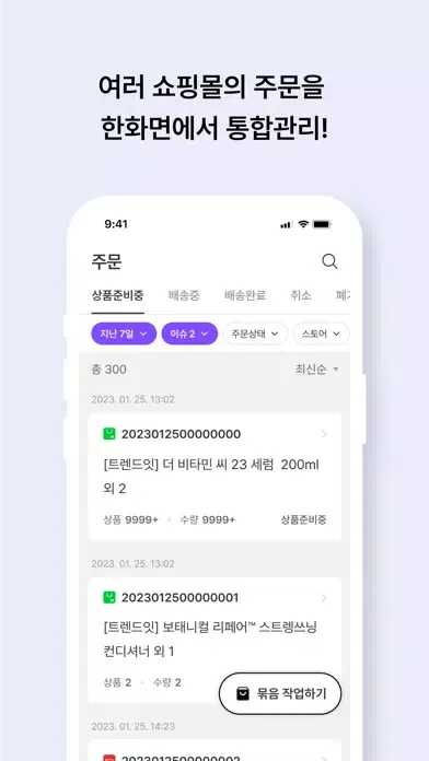 여러 쇼핑몰의 주문을 한화면에서 통합관리!