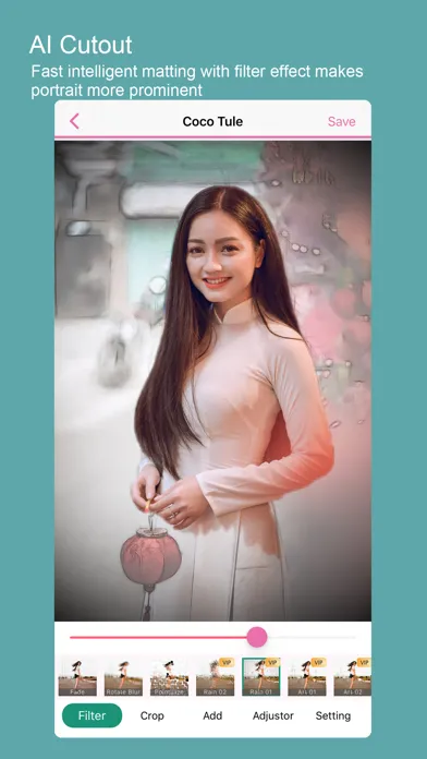 Coco Tule uses the AI image cutout algorithm combined with manual operation to accurately and quickly locate the foreground area, which can be completed in two simple steps. It supports a variety of filters to handle the background area, bringing new fun to the image cutout!