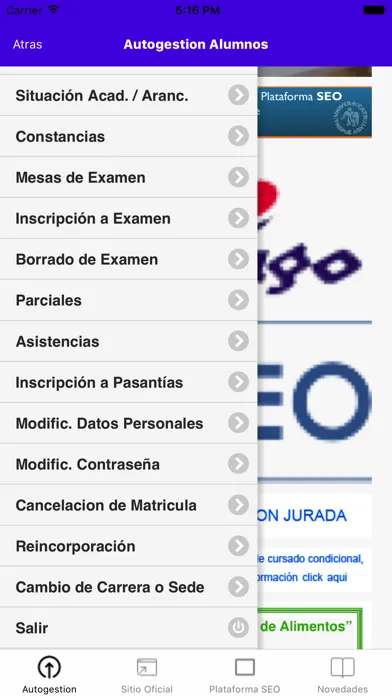 - Acceso a todos los servicios de la Autogestión Alumnos a través de una interfaz diseñada específicamente para los dispositivos móviles, más rápida e intuitiva.