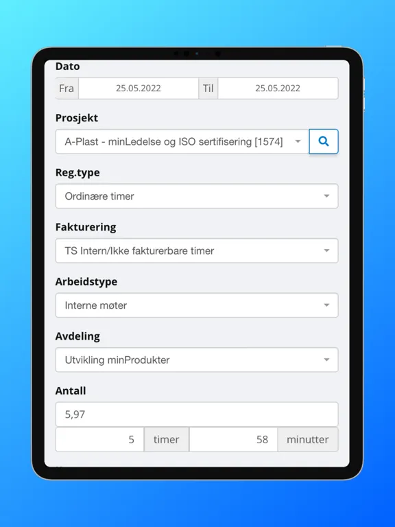 Ảnh chụp màn hình của Visma Tid Go iPad