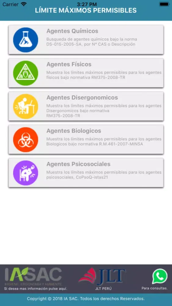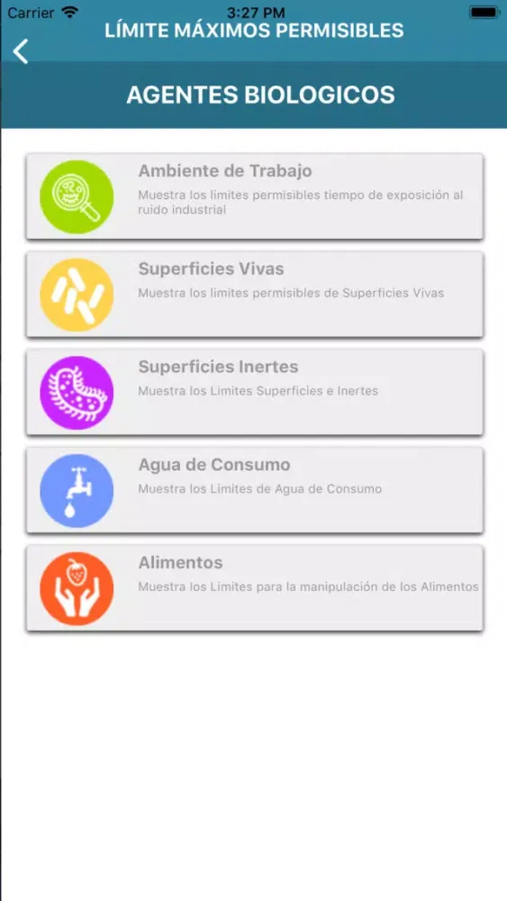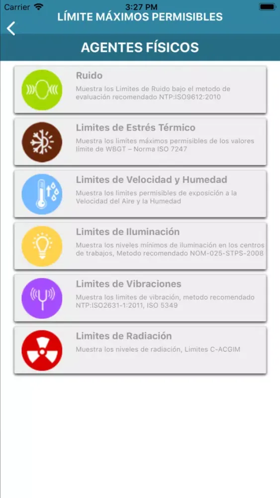 App de consulta de Valores Limite Maximos Permisibles que se establecen para proteger la salud de los trabajadores de toda actividad ocupacional y a su descendencia mediante la evaluacion cuantitativa y para el control de riesgos inherentes a la exposicion, principalmente por inhalacion de agentes quimicos presentes en los puestos de trabajo.