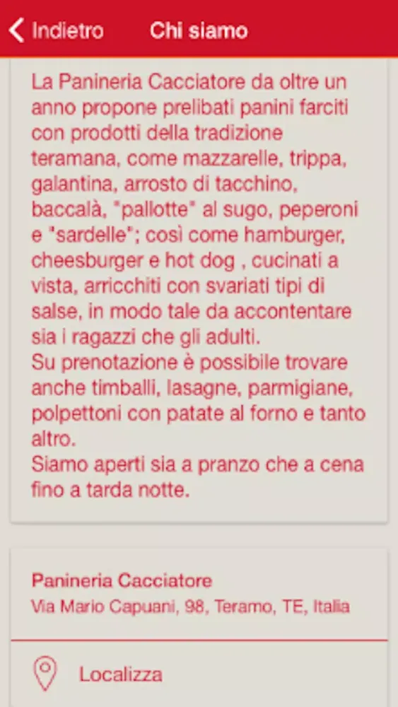 Ảnh chụp màn hình của Panineria Cacciatore iPad