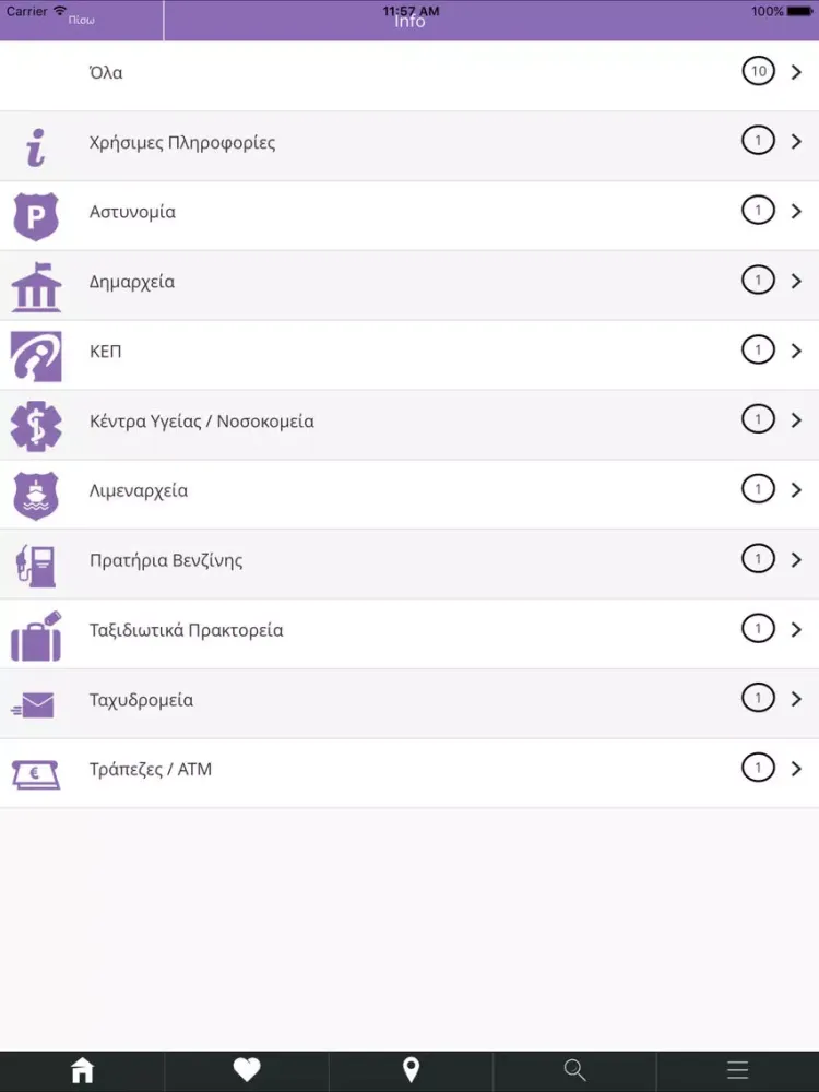• Πλήρης κάλυψη όλων των βασικών σημείων εξυπηρέτησης (πχ. διανομή, εστίαση, διασκέδαση) και των βασικών πληροφοριών (πχ. Κέντρα Υγείας, Δήμος, Αστυνομία, Tourist Information) της κάθε περιοχής