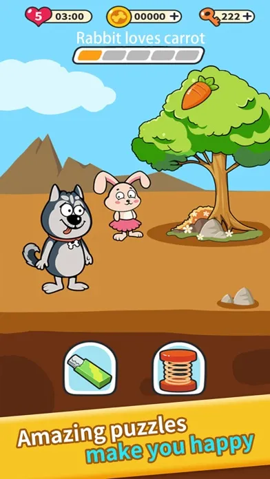 The puzzles in the game incorporate various characters and stories, and are connected together through interesting plots. The Husky, who is stupied sometimes, is accidentally involved in his own black hole of brain power. Various strange brain puzzles are waiting to be solved, such as: helping the Husky defeat all kinds of monsters, encountering new friends during the trip, solving robberies, and helping The glass man found the way to the castle and so on. There are no unsolvable puzzles, only unexpected think!