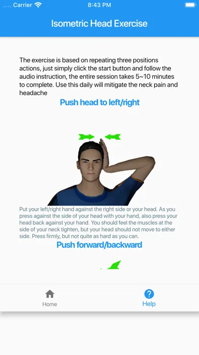 Isometric head exercise is a free and simple to use app that can help you to build stronger neck muscle. It is suggest to do this exercise daily to improve the strength of the neck muscle. Simply tap on start button and follow the audio instruction. The exercise take about 5 - 10 minutes to complete. If you like this app, please give rate it