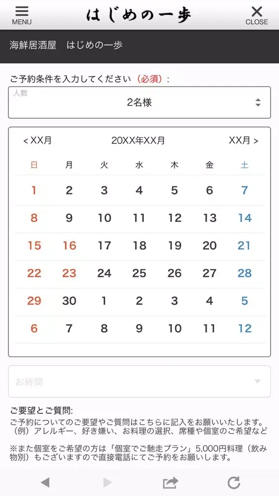 ご希望の人数・日時を指定して予約できます。安心してご予約ください。