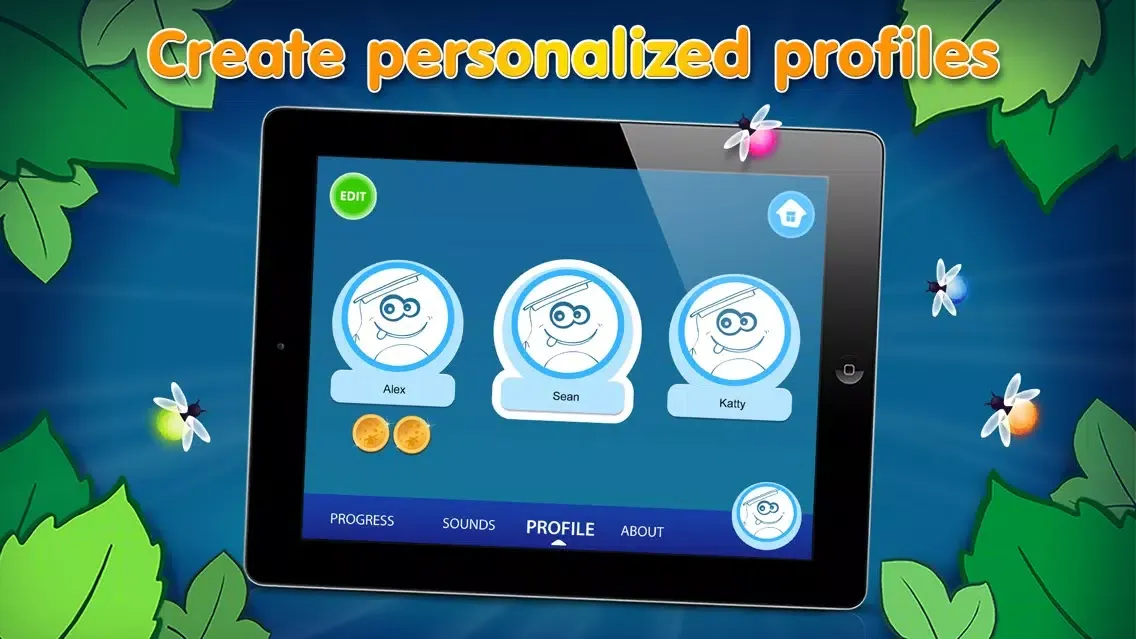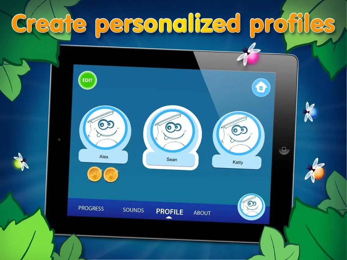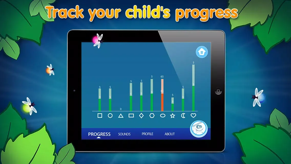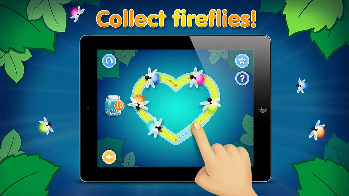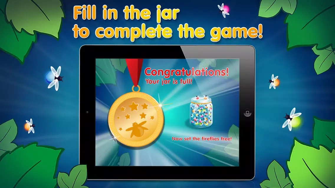 Toddlers are encouraged to learn about shapes through interactions with engaging animations and sounds. There are 10 shape that kids will have fun with guided with a professional voice over. Every time your toddlers complete an activity, they collect shiny fireflies that can be released in the end of the game. Lively music, full voice over and sound effects respond to the child’s efforts with positive encouragement and congratulations as appropriate.
