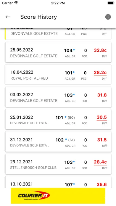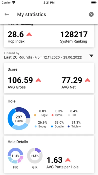 - View course stats, such as the number of birdies, pars and bogeys they have recorded