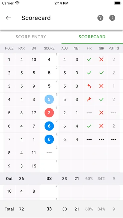 - View hole-by-hole stats, such as Fairways in Regulation, Greens in Regulation, and Putts Per Round