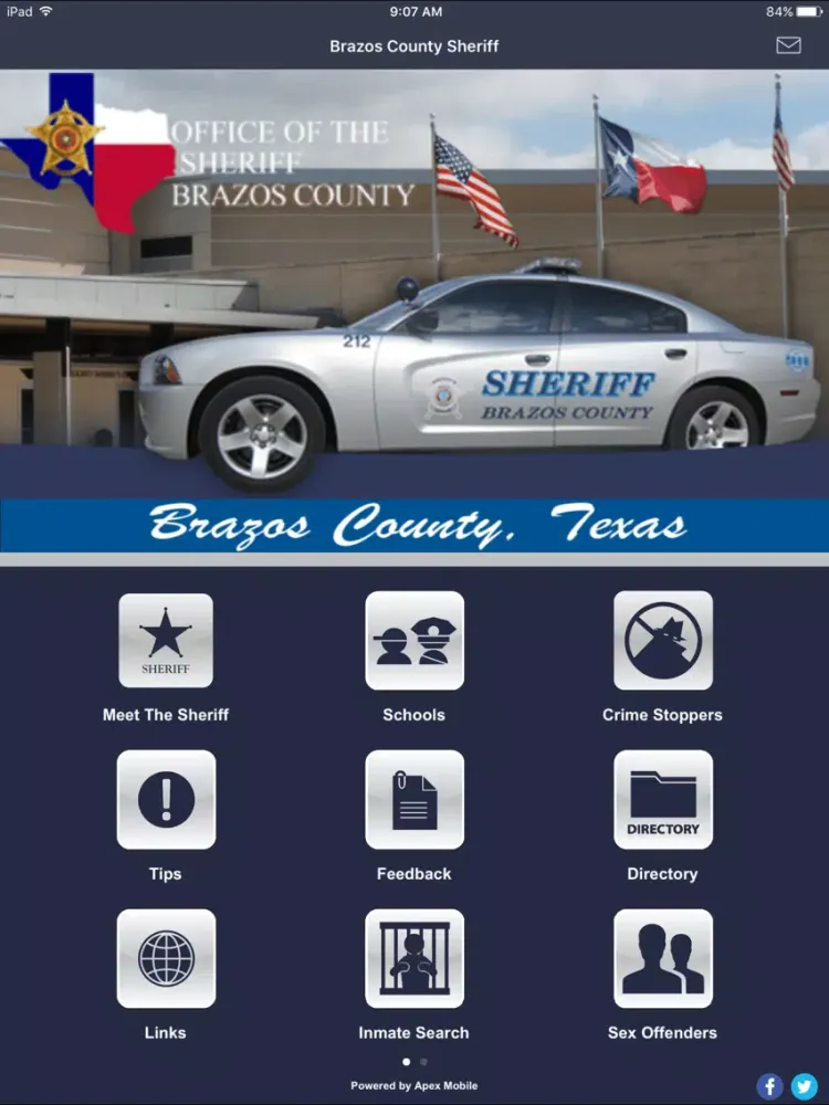 Welcome to the iPhone/iPad app for the Brazos County Sheriff's Office. The Brazos County Sheriff's Office app allows users to report issues or concerns directly from your iPhone or iPad, with photos! There are useful links for community resources, crime prevention, and on-line reporting!