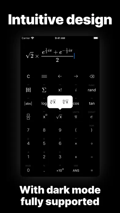 The modern interface that makes a clean break from traditional pocket calculators. Equations are entered in a natural way, adhering to every detail of hand-written maths.