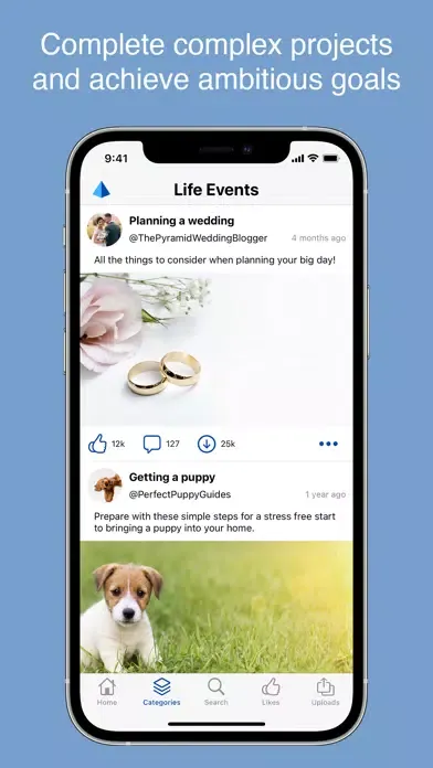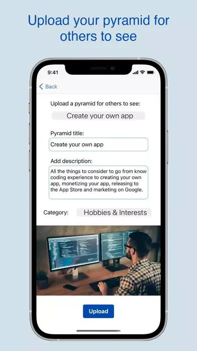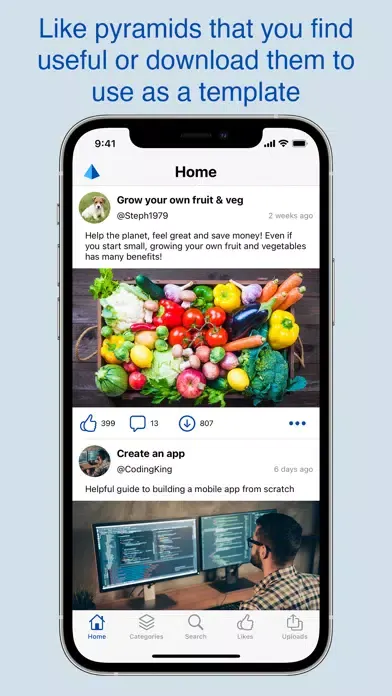 - Upload your pyramids for people to see, either to ask for feedback or to inspire others.
