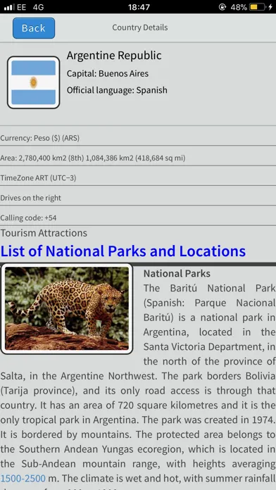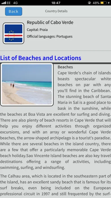 This is a tourist app that gives locations of touristic places in the world, tourist attractions such as: beaches and locations, national park and location, mountains and locations, all types of tourist attraction in the country, it also gives the capital, calling code, time zone, area of the country and many more.