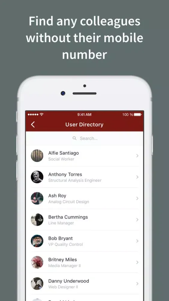 The app is available not only to employees, but also to external individuals like customers, volunteers, suppliers, contractors, freelancers, investors, etc.