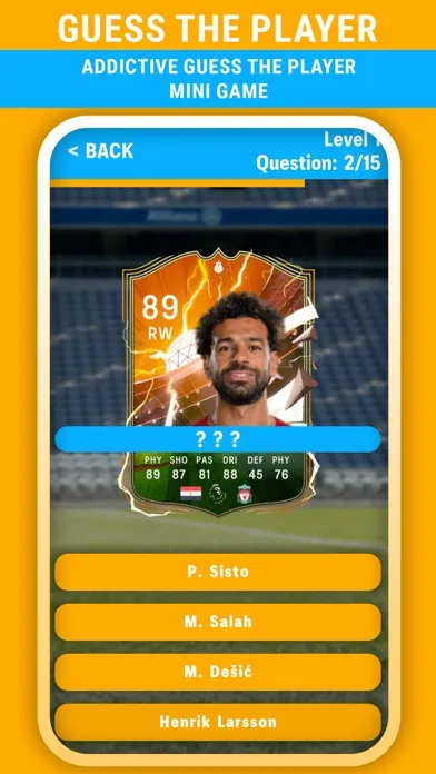 Guess the Player: Put your football knowledge to the test! Dive into the exciting "Guess the Player" mode and challenge yourself to identify top football stars.
