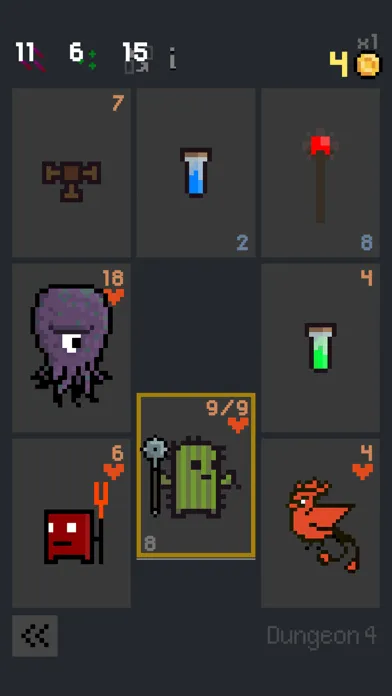 Rogue Cards (Dungeon Cards) is an offline roguelike with puzzle elements. Move your character card across a grid of nine cards, clashing with neighbors to advance. It's turn-based dungeon crawler with randomly generated dungeons and retro pixel art. Choose from ten heroes, explore dungeons, and battle monsters for loot!