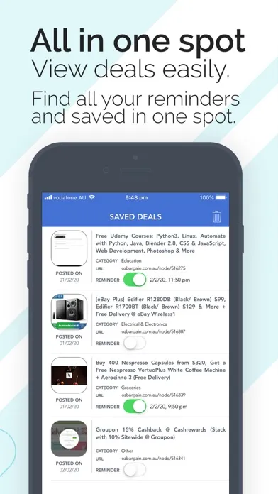 Get organized by setting reminders for upcoming deals or saving a deal to read later on! With easy categories and sections for the hottest or latest deals, you are sure not to miss any deals from Ozbargain!