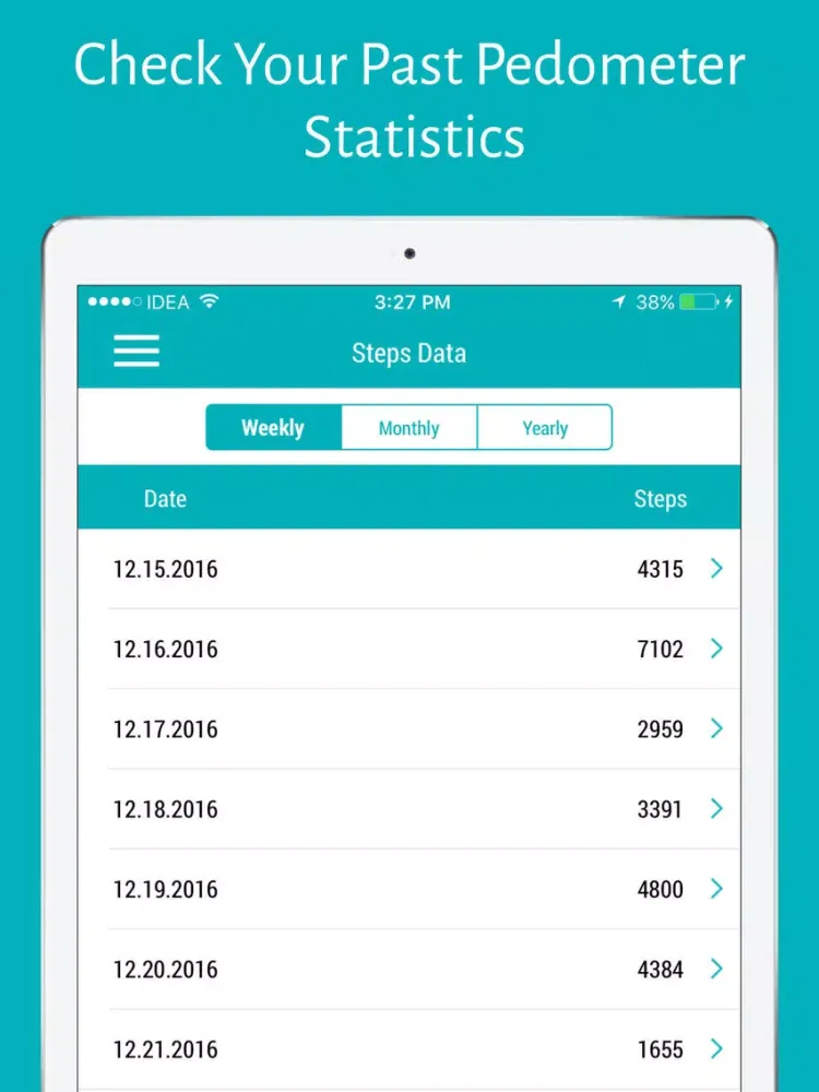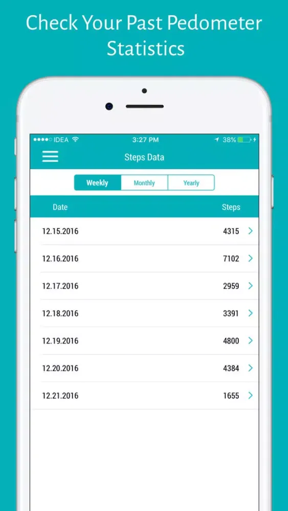 - Check your steps history based on weekly, monthly and yearly in list and also provides graphical representation.