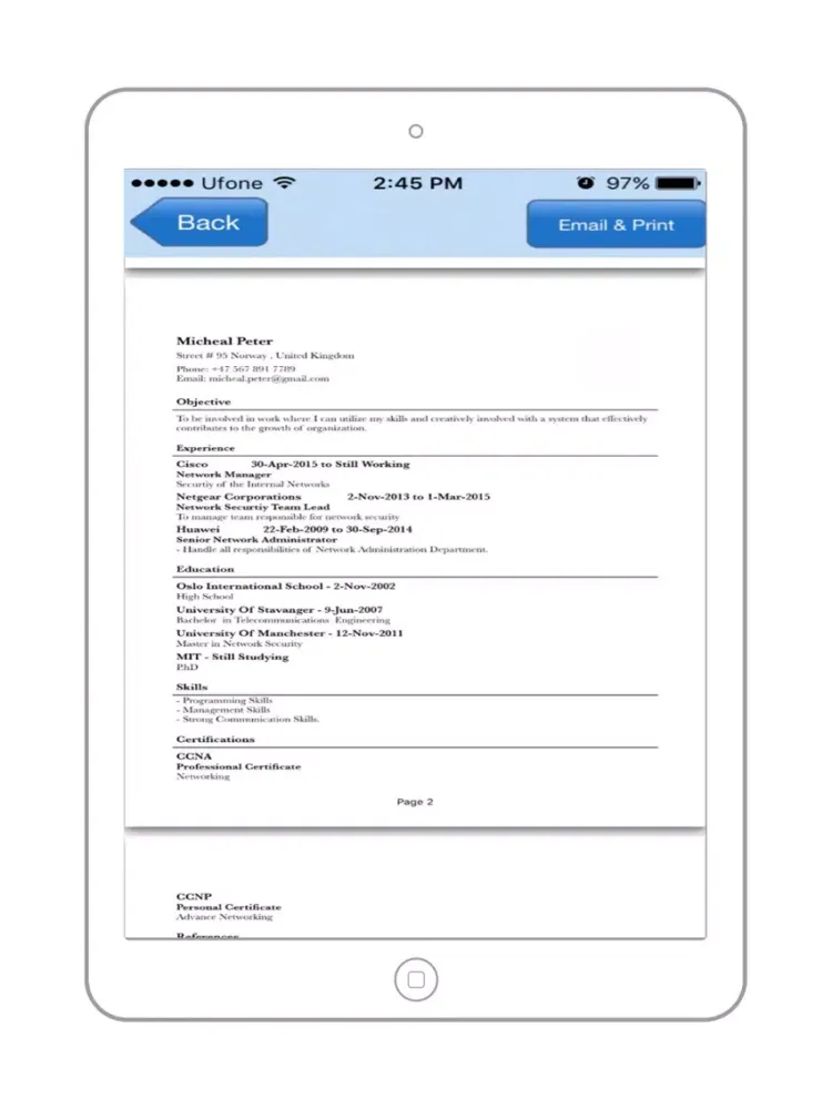 Resume Manager - Resume Writing App for Job Search iPad 应用截图