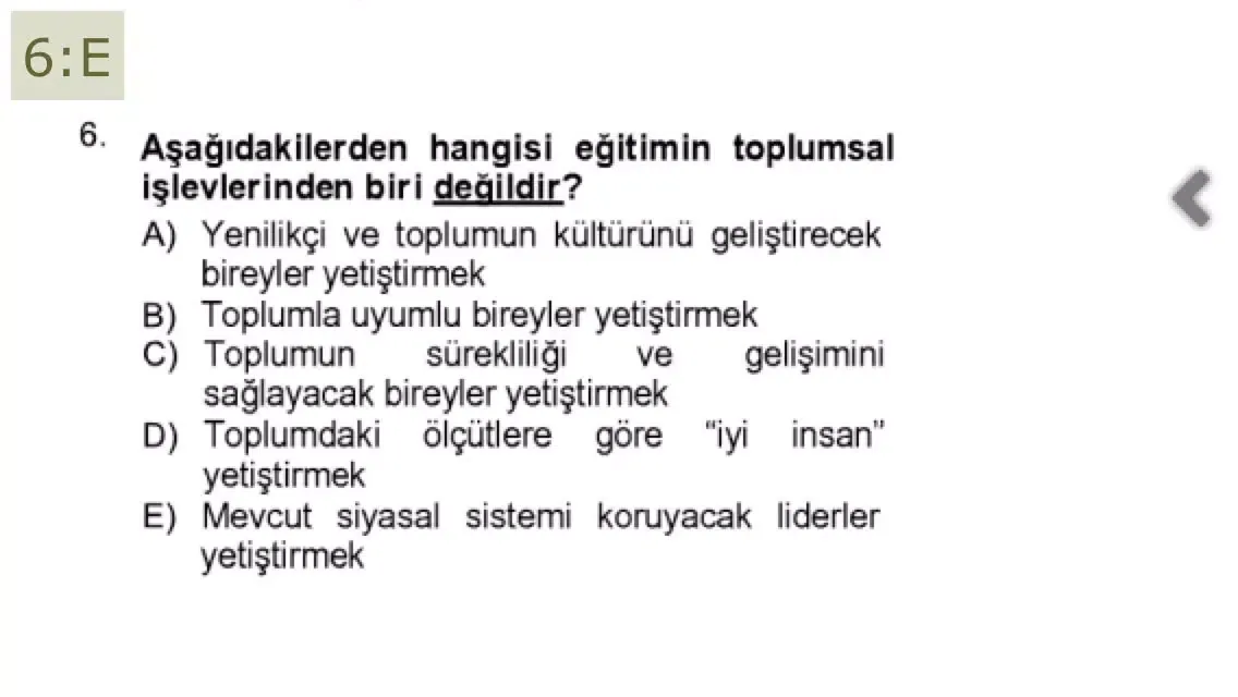 - Facebook ile giriş yapan herkese, yazılımda bulunan 32.241 adet testteki ilk 2 soru ücretsiz sunulmaktadır (Tamamını çözebilmek için bölümleri satın alma gereklidir)