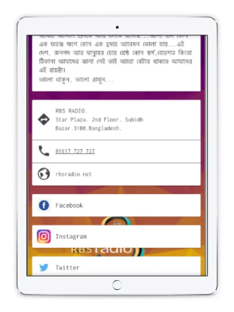 Please contact us or give your feedback to us on rbsradiobangla@gmail.com