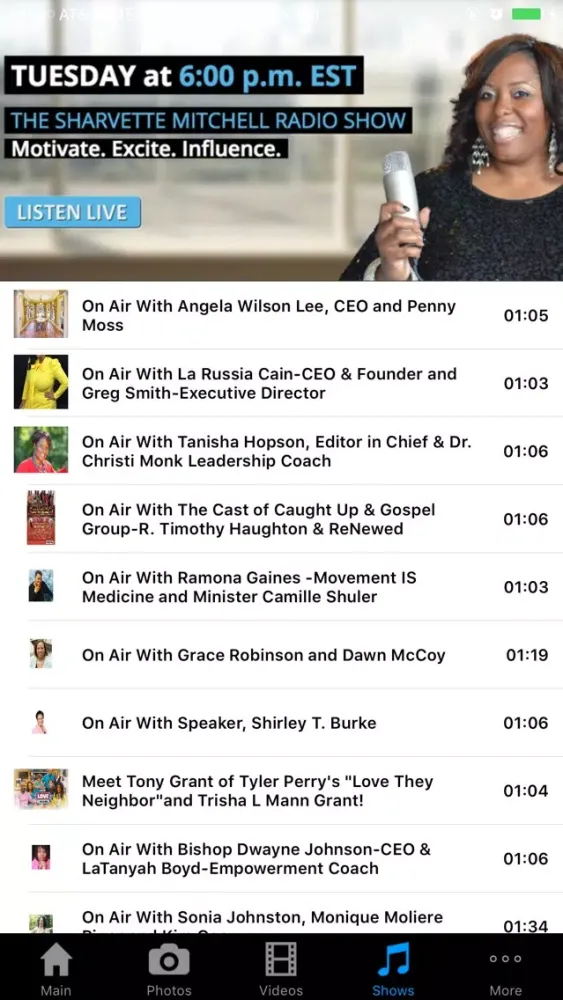 The Sharvette Mitchell Radio Show, features various guests that include, celebrities, artists, authors, small business owners, public speakers, consultants, media personality and other influential people!