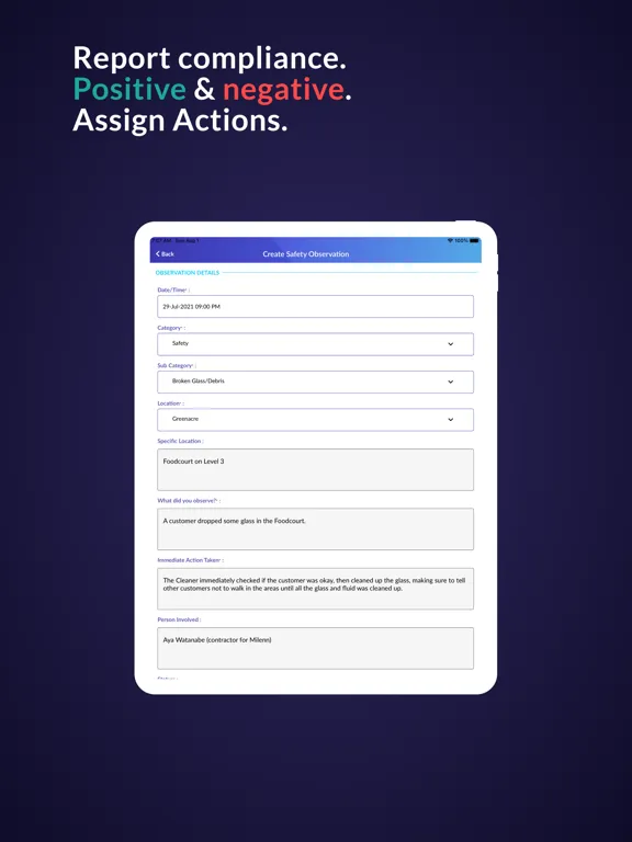 *Safety Observations – complete proactive behavioural safety observations to track compliance with organisational safety requirements