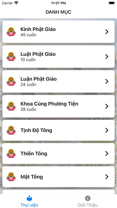 Ứng dụng hiện đang lưu trữ 5 danh mục trong đó bao gồm: