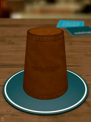 2. Du öffnest den Becher (durch einen Fingerswipe) und siehst dir dein Würfelergebnis an, ohne es den Mitspielern zu zeigen.