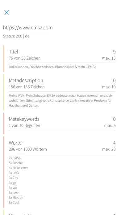 In the basic analysis of the SEO Browser 10 important factors for good search engine optimization such as title length, length of the meta description or the quality of the URL will be considered. Through color-coding, you can quickly detect any potential for optimization. In the detailed view you get more information about the optimization factor and optimization possibilities.