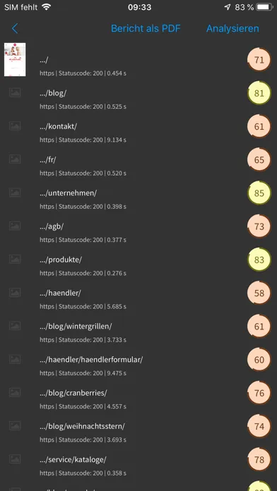 You can generate the result of an analysis as a PDF. You can use this report for example to accurately define SEO Todos.