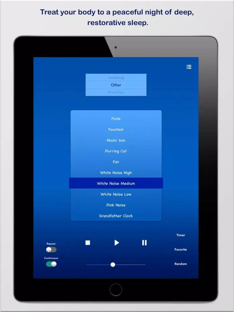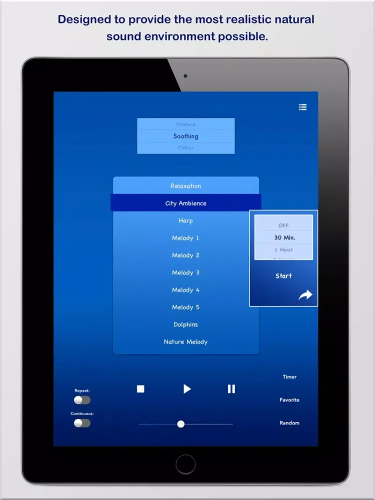 Listen to soothing melodies, sounds of nature, white noise, calming ambience and much more! Designed to provide the most realistic, natural sound environment possible to help you relax and the best night sleep possible. Treat your body to a peaceful night of deep, restorative sleep. Turn your alarm clock off and take a nap with these high quality sounds.