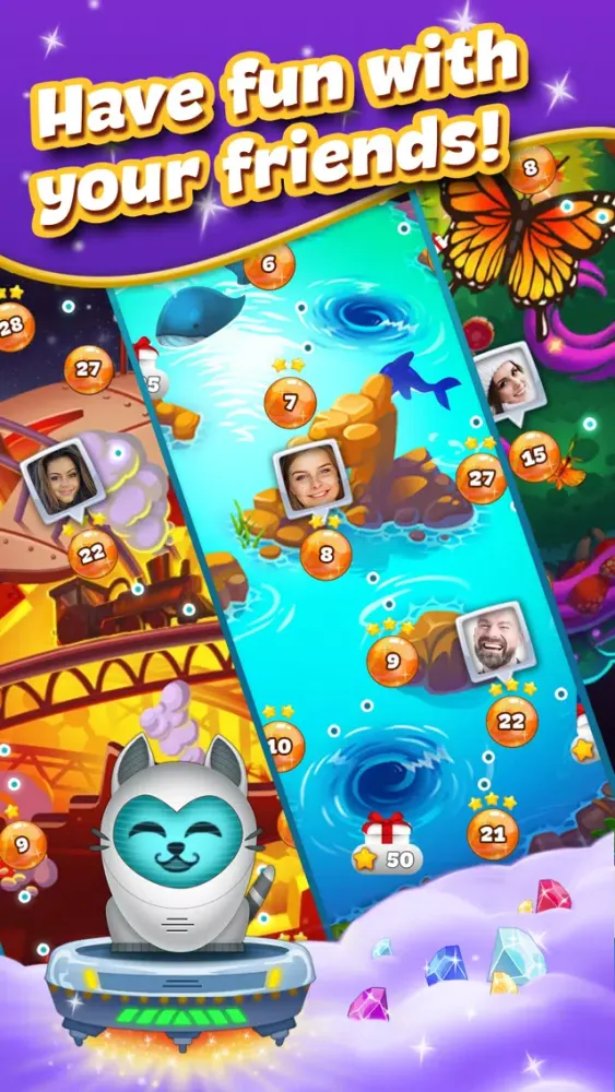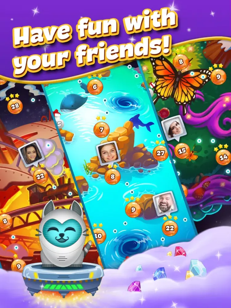 During your journey through the space you meet different funny creatures who can help you with their skills to help the levels!