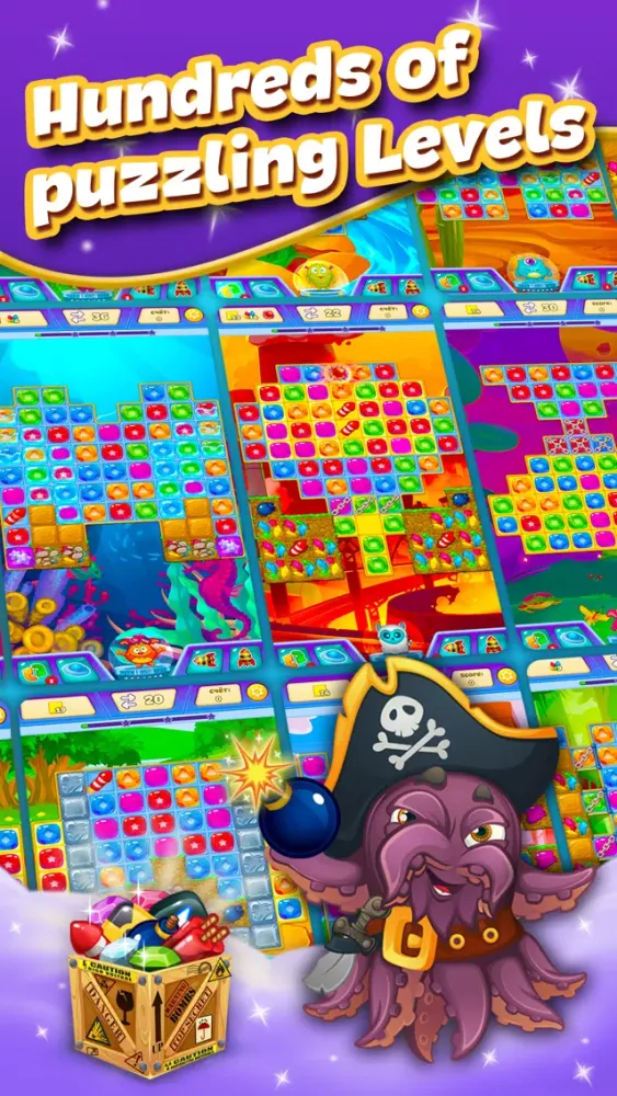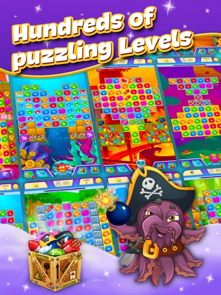 Hundreds of match3 levels in fascinating world, exciting tasks, explosive boosters and funny creatures that help you to solve the levels!