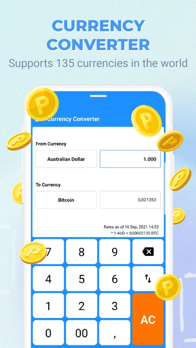 • Support calculator to convert 135 world currencies, including dollar, euro, yen, yuan, etc.