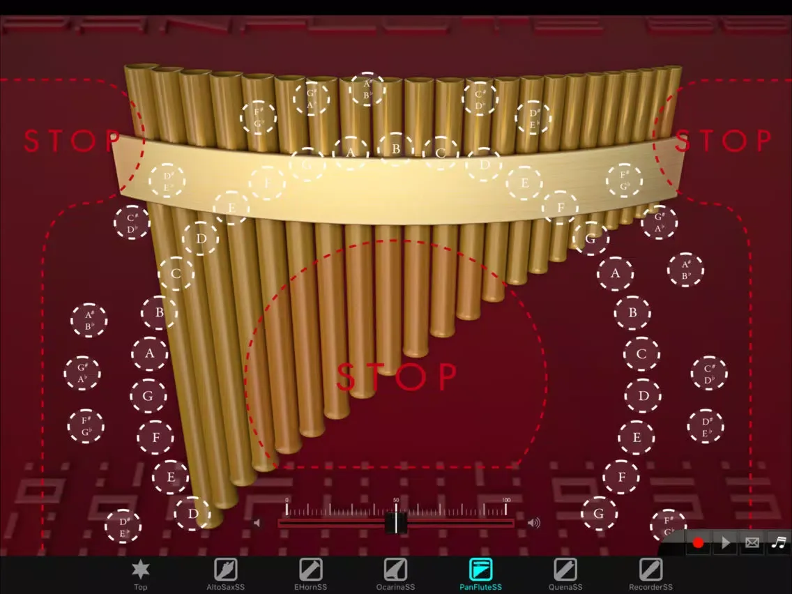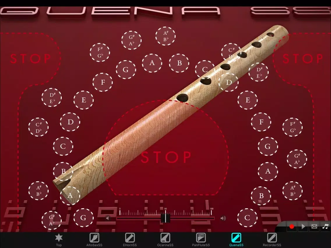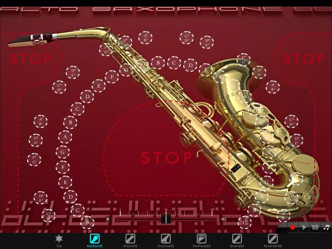 Added a volume slider at the bottom center of the screen in order to fix the problem that fade out doesn't work while you can play staccato notes with the stop button. When you fade the audio out, please make sure to tap the stop button.