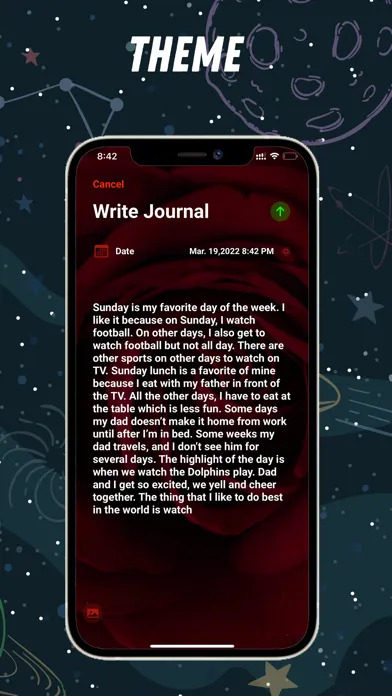 We often write diaries in the nighttime, that is why we provide a free night theme in this diary app. With this, you can completely relax and write your diary at night time.