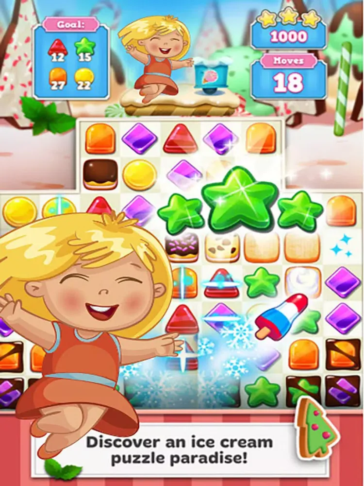 Match to collect tasty ice cream treats as you adventure through the Tasty Ice cream Lands