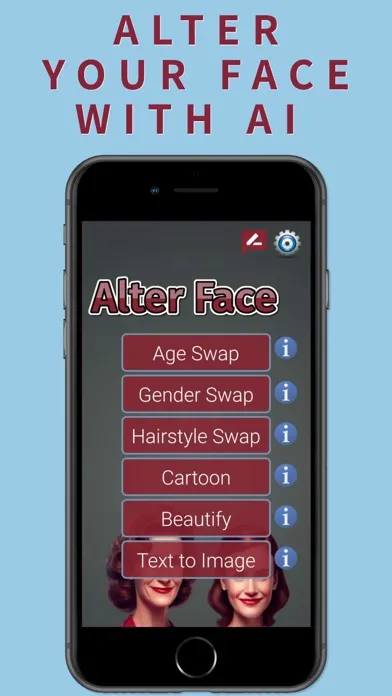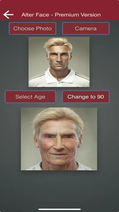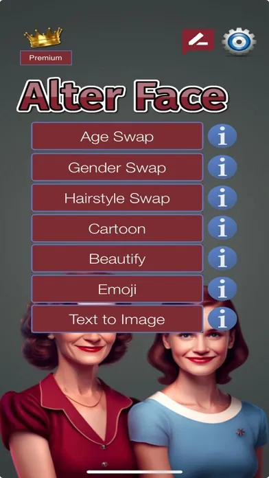 • Variety of Changes: Alter Face offers many transformations, such as becoming older or younger, gender swapping, cartoon characters, hairstyle changes and beautifying to remove blemishes and restore old low quality photos. You can even use Alter Face to change a face to anything you describe in the text prompt.
