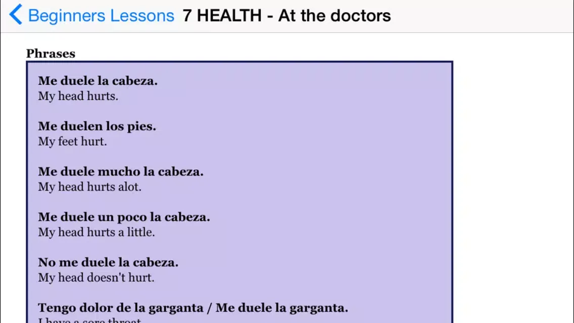 Lesson Notes: Each video has an supporting page listing the main phrases, vocabulary, verbs and tips on how to use certain grammatical structures. Excellent as a phrasebook / flashcards and can be used offline.