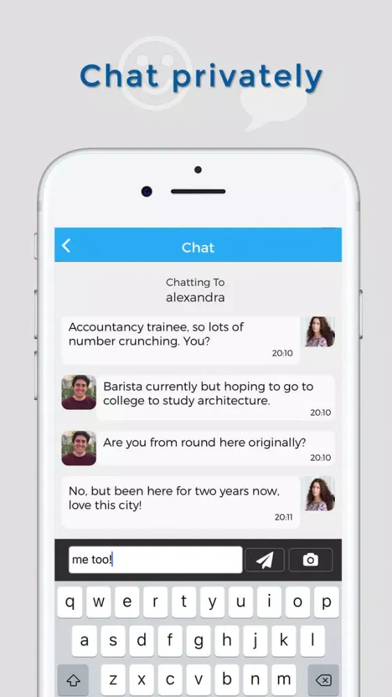 Send text, photos or videos to people near your location, or just to a chat space, and because every chatter has a profile you can directly message, it's a great way to make new friends, both nearby and around the world.