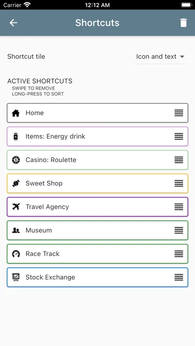 * Automatic alerts for travel, energy, nerve, hospitalization, drugs, racing, messages, events, trades and stocks.