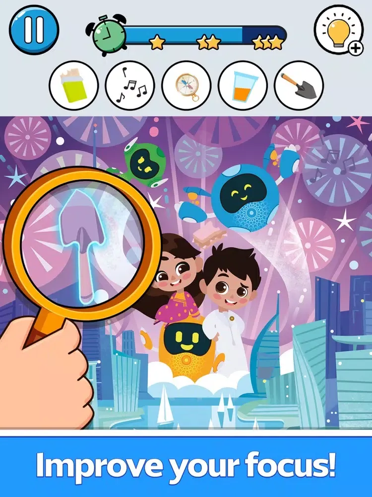 Dust off your magnifying glass and put on your detective hat to uncover the secrets of Expo 2020. Join the Expo’s mascots, Latifa and Rashid, as they go on a hidden object adventure through the world's greatest show. Glimpse the future of technology and discover the latest innovations in one of the world's most fascinating cities. Spot hidden objects in photos and identify landmarks around Dubai to help Latifa and Rashid find their way to collect lost items. Along the way, you'll learn more about this extraordinary World Expo and get a glimpse of the incredible Dubai has to offer.