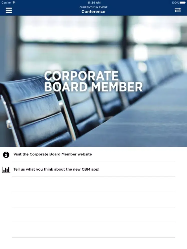 The Corporate Board Member app is a mobile event, engagement and communication app for Corporate Board Member events.
