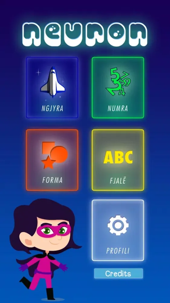 Neuron is an Albanian language educational app, with the purpose of teaching its users colors, maths, shapes and words, all in the Albanian language. Neuron has 4 mini games that teach basic maths, hundreds of words in Albanian, as well as colors and geometric shapes in Albanian.