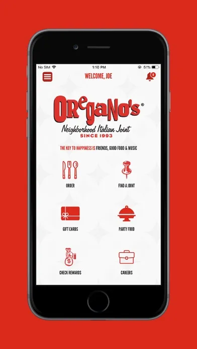 The Oregano's app is your way into the cool kid's club to be the first to hear about our Tasty Limited Time Offers, Contests, & Special Events, order online, and new menu items! You even get a free Kickbutt Garlic Bread just for signing up and an Original Pizza Cookie on your birthday!